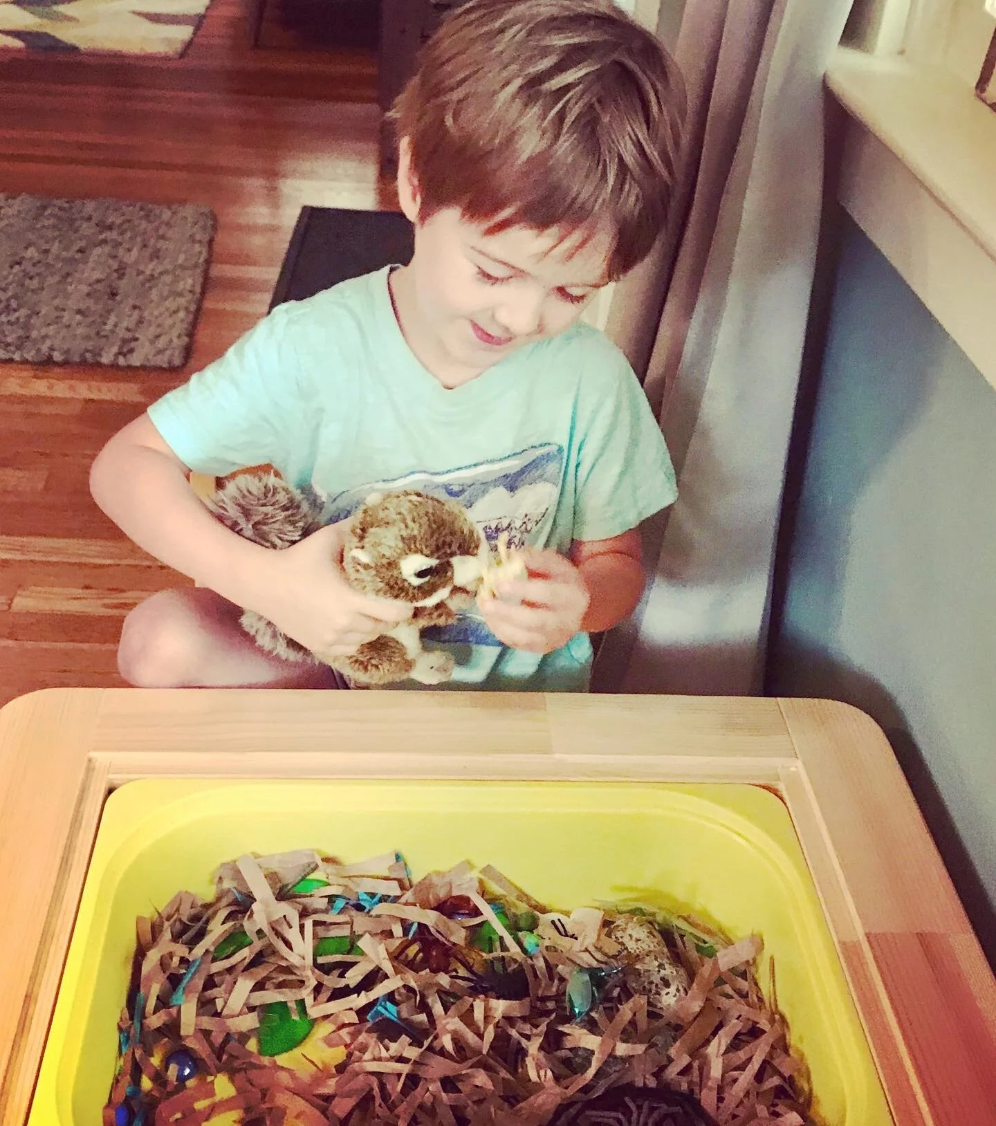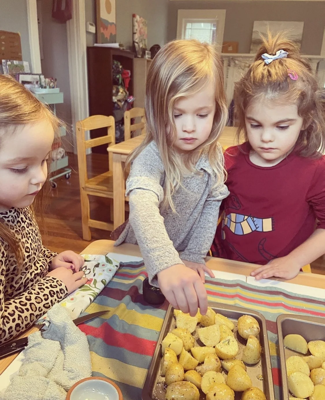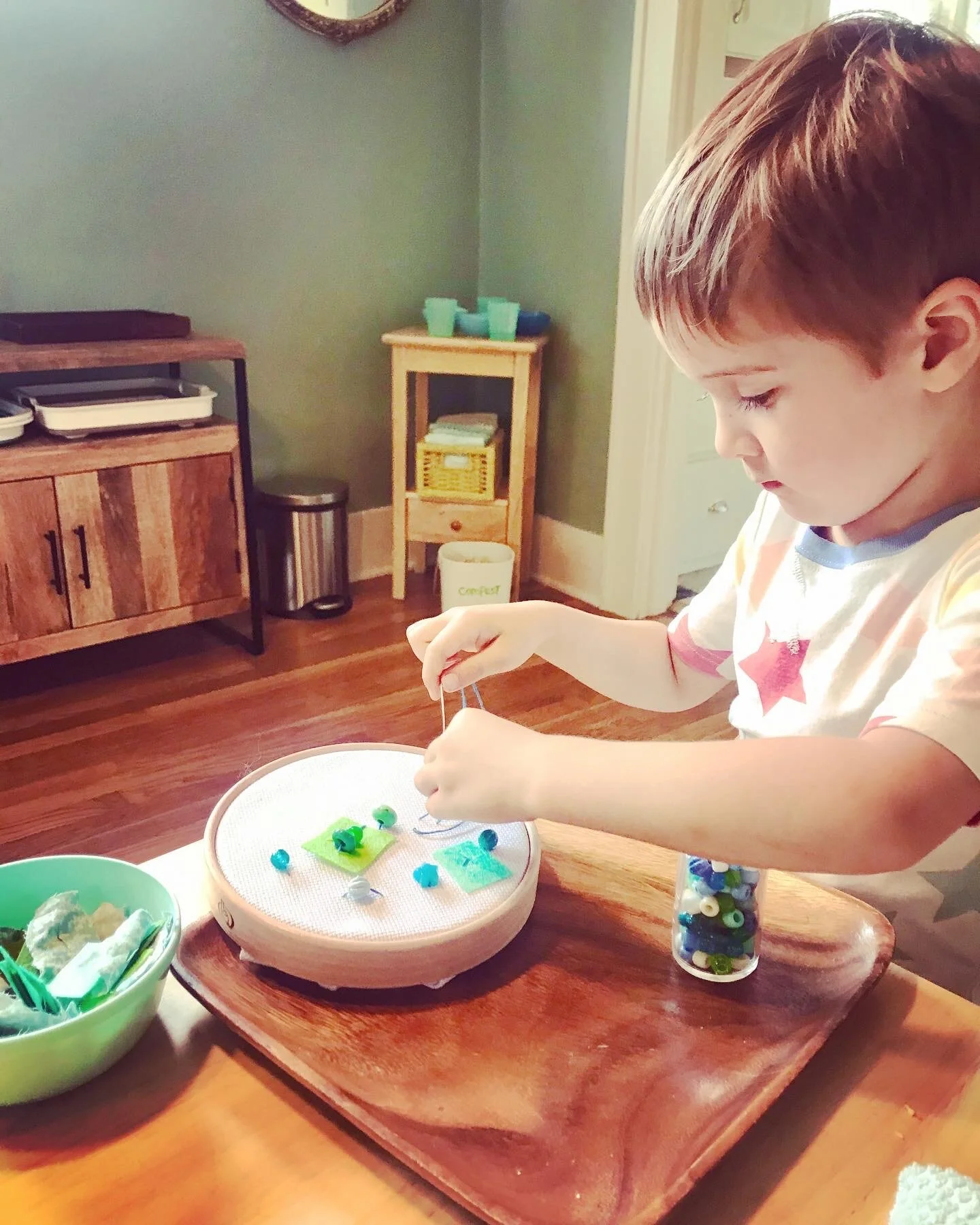 Sewing is a popular, focused activity which strengthens fine-motor skills.
