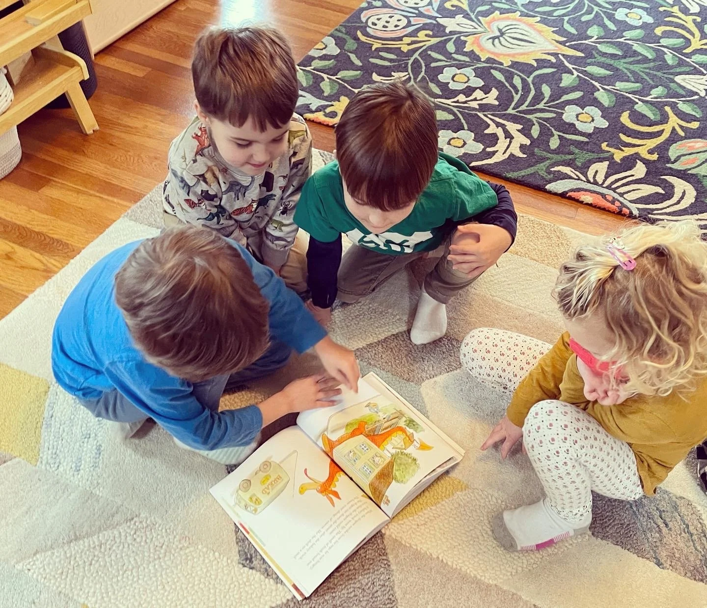 Children have many opportunities throughout the day to explore our rotating book selection.